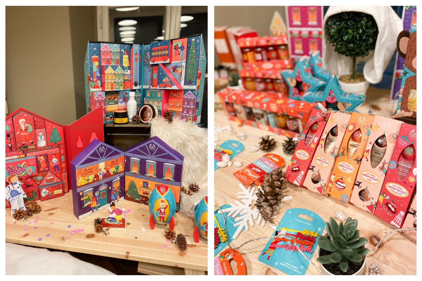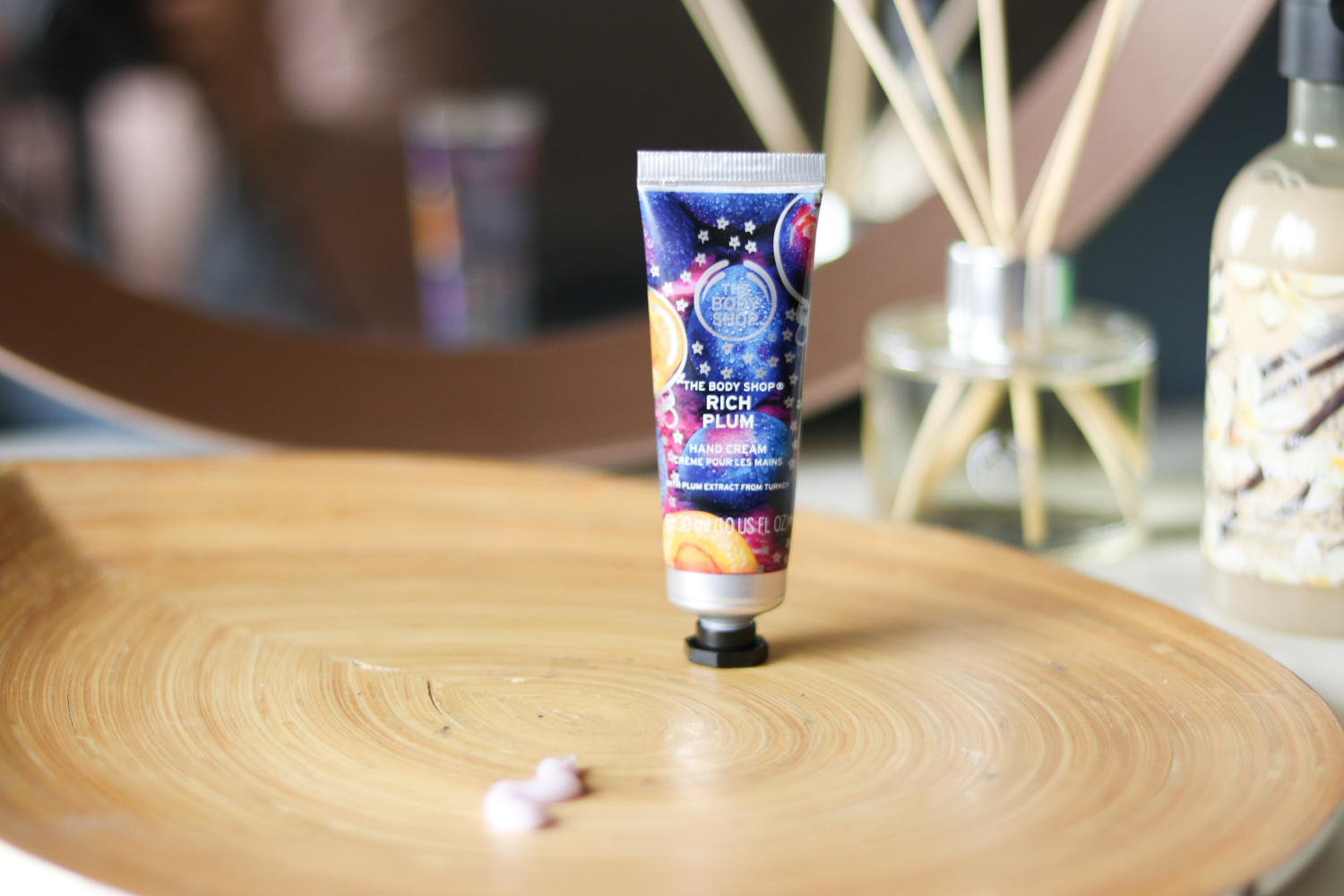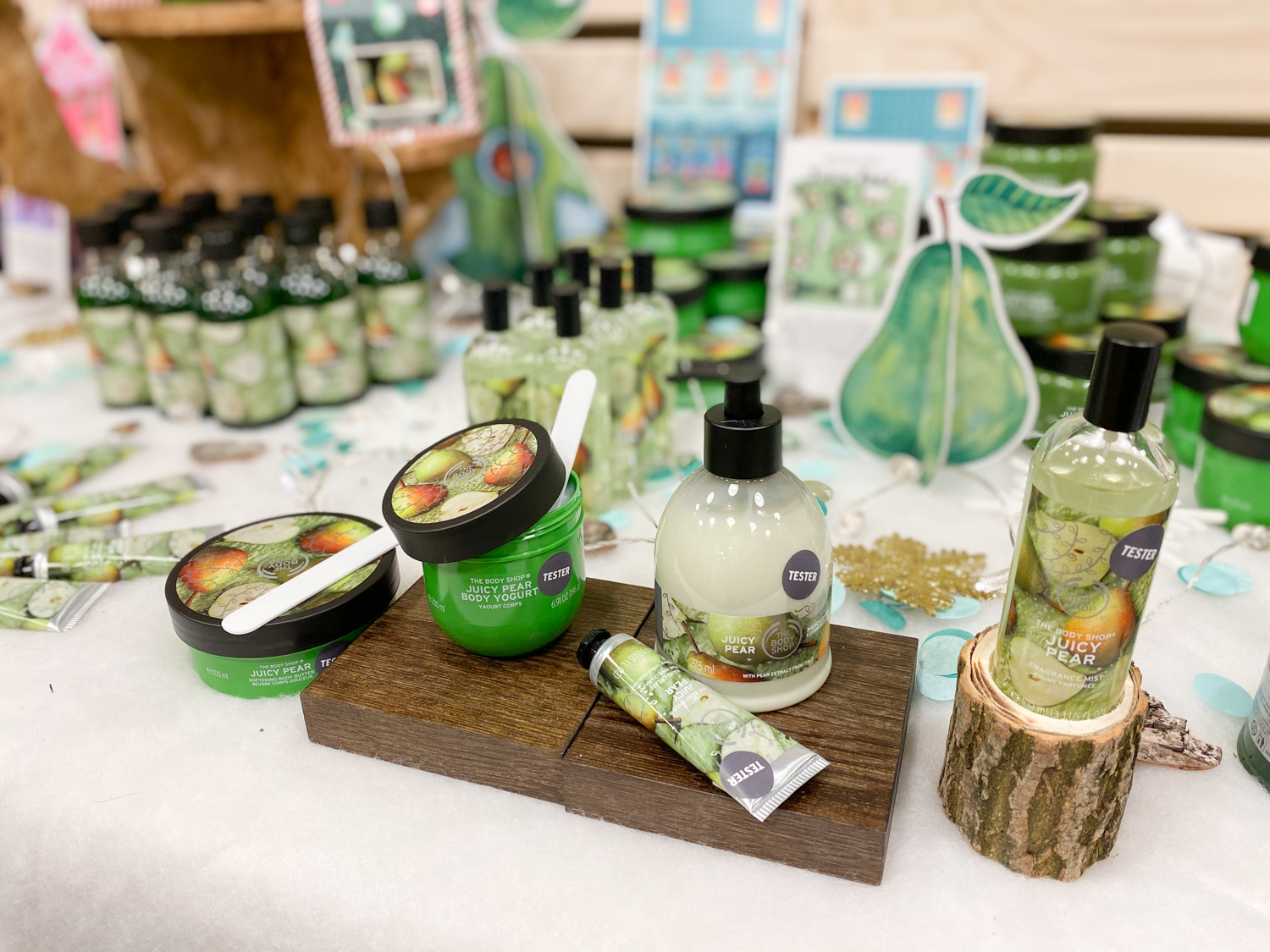 Če je katera znamka po čudovitih prazničnih kolekcijah, je to nedvomno The Body Shop. Nekateri njihovi vonji so stalnica (npr. linija z vanilijo), medtem ko včasih kar pogumno stopijo iz cone udobja božičnih, sladkih vonjev in se usmerijo na bolj sadne, sveže ali kiselkaste izdaje. Letošnje leto so pri negi telesa zaznamovali s tremi novimi omejenimi prazničnimi kolekcijami, in sicer Juicy Pear, Rich Plum in Warm Vanilla. Na zgornji sliki pa lahko vidite tudi nekaj novih ličil (in čudovitih bleščic v obliki spreja) ter difuzorje za prostor, o katerih bom več napisala v zaključku.