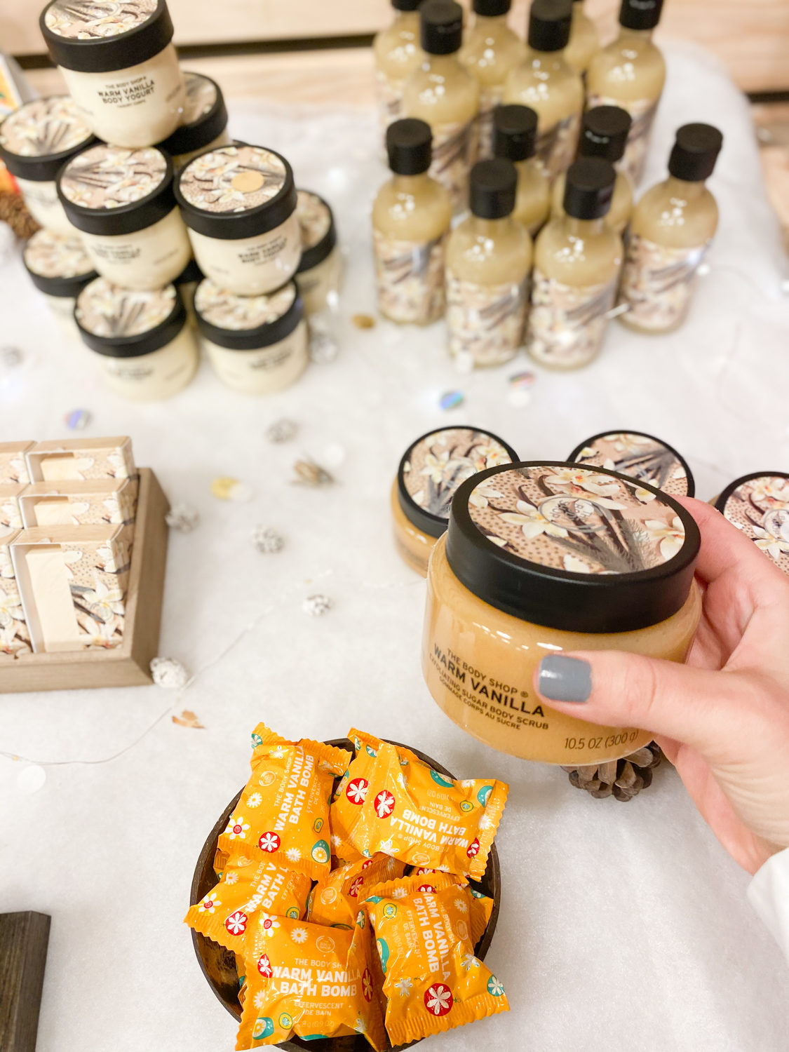 Vsakoletna stalnica mojega kozmetičnega izbora (bi rekla omarice, pa bi se zlagala, ker izdelke kupčkam na preveč mestih) je Warm Vanilla. Zelo podobna lanski različici, le da so tokrat gelu dodali tudi noto karamele in nežen sijaj. Na dogodku sem se seveda zaljubila v maslo za telo, ne bi pa se branila tudi pilinga ali pa kopalnih kroglic, ki jih prav tako še nisem imela!